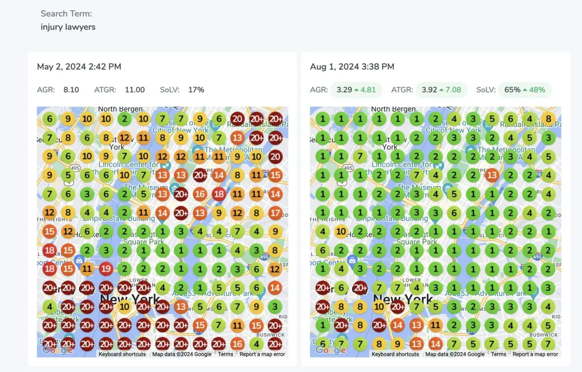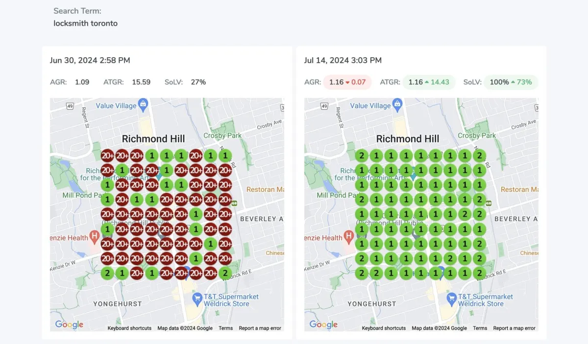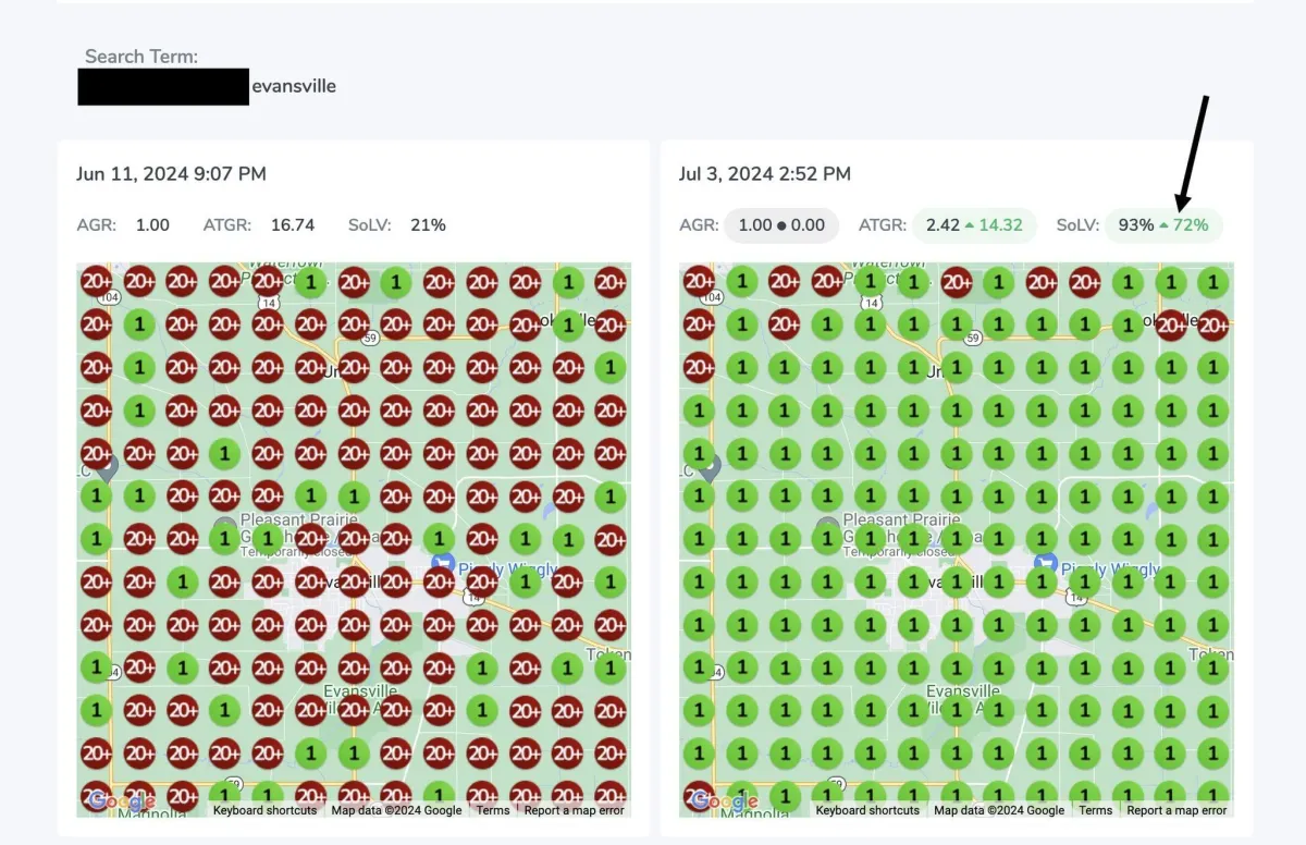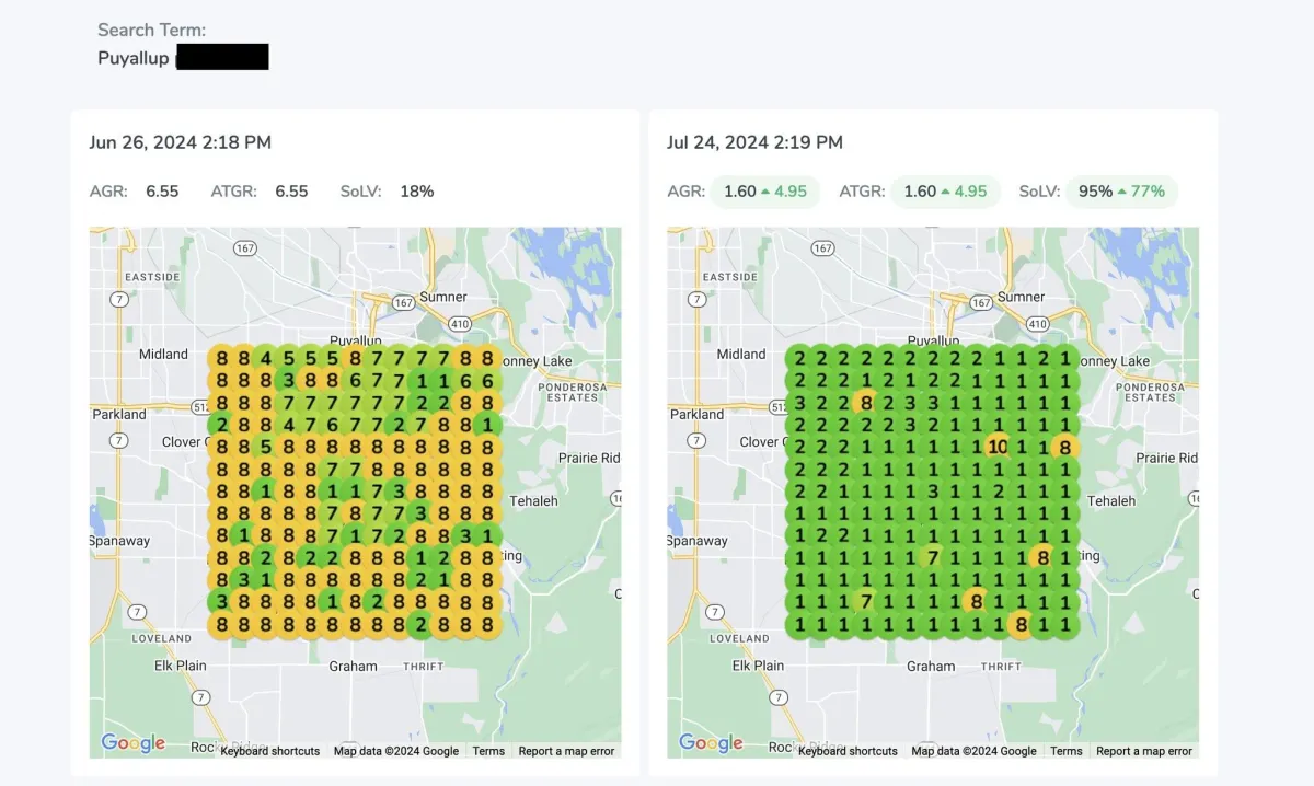 Success depends on various factors, but we provide all the tools and expertise to significantly improve your local search rankings. You don't need to pay if we cant get even one KW in the top 3 of the Geo grid that we will setup